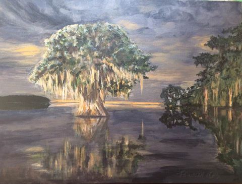 I had put this aside for a while because I wasn’t sure what to do next. Recently I looked again at the photograph by New Orleans photographer Frank Relle and was inspired – as I always am when I see his work. So, I just decided the best thing to do would be to get some water, clean up my studio and just jump in. This is what I have so far. I’m getting excited about finishing it. This has been a big challenge.