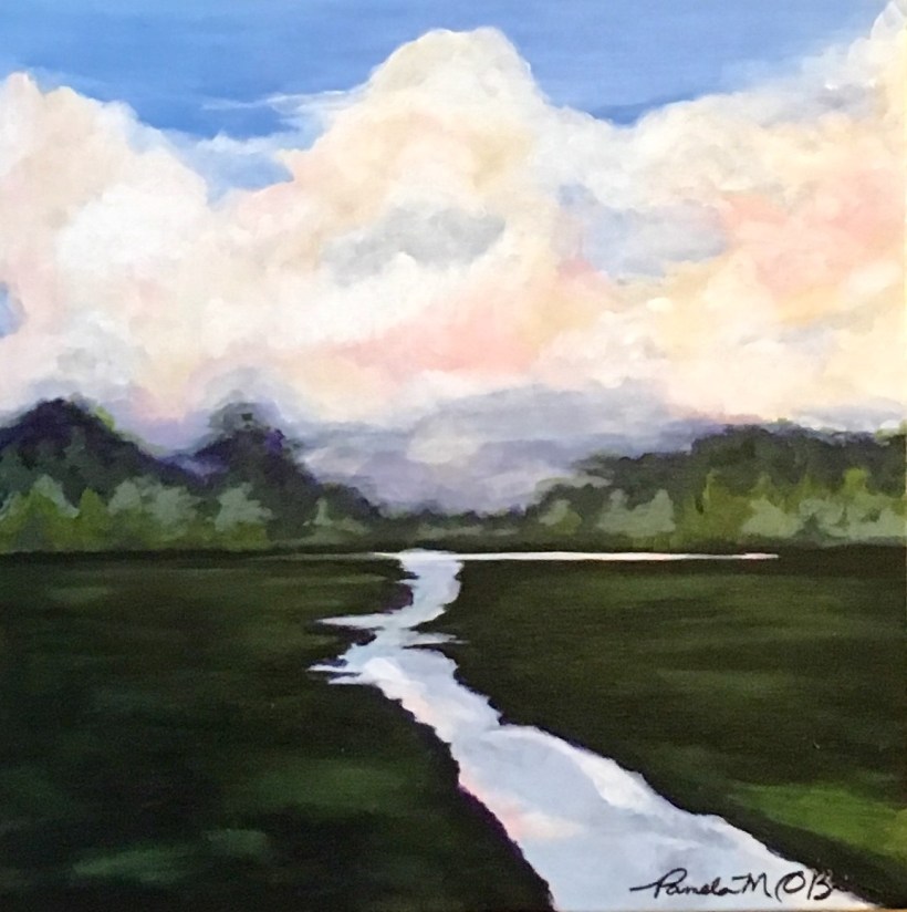 After a few months of being tired, ill and unmotivated, I’ve been working on some big paintings lately and this one was inspired by a smaller one I did a couple of years ago that’s still one of my personal favorites. I really like the 36 x 36 size and it’s hanging over my sofa in my newly painted den/kitchen/great room until it goes to my upcoming exhibit. What do you think?