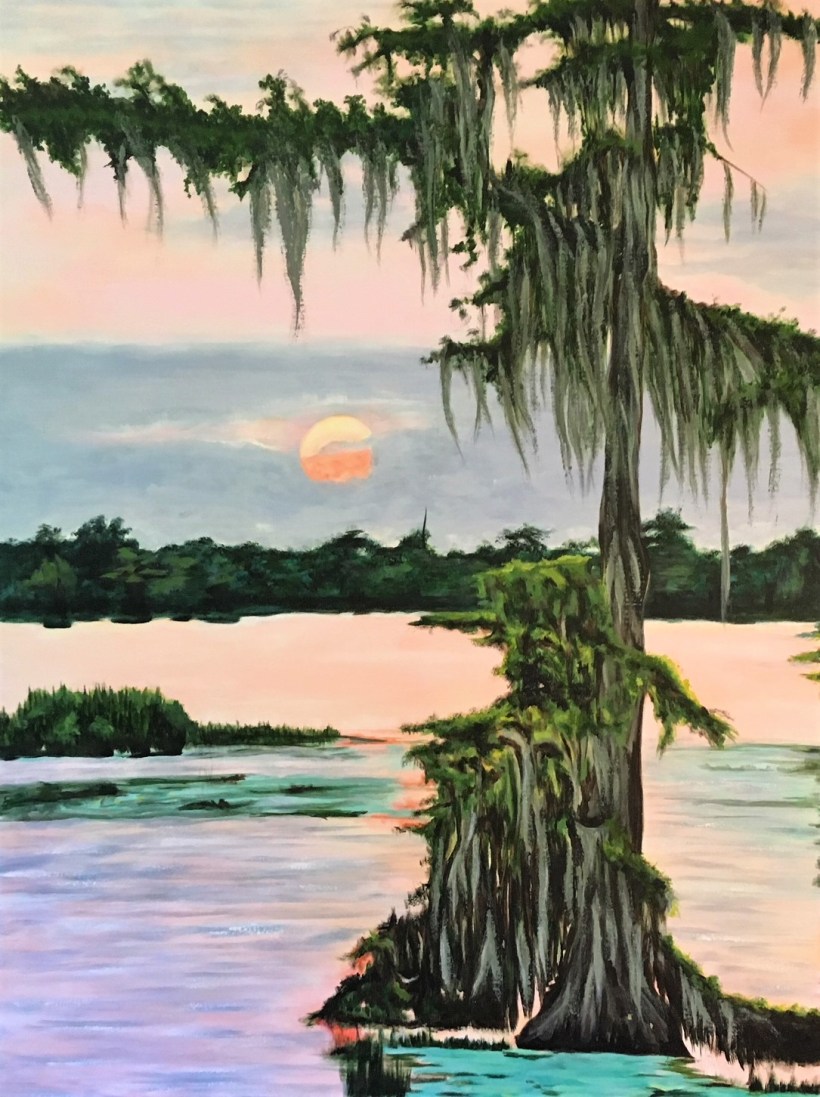 Western Lake in Grayton Beach Florida, with its iconic stand of pines on the shore, is one of my favorite and most popular scenes to paint. This one sold before I had finished it and is already in its new home in Santa Rosa Beach.