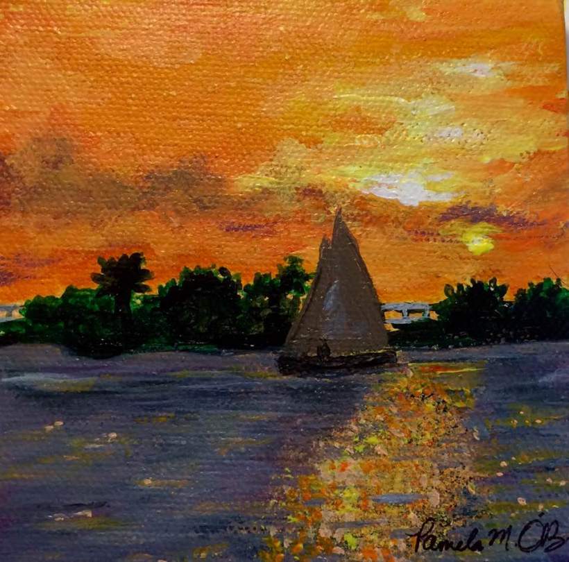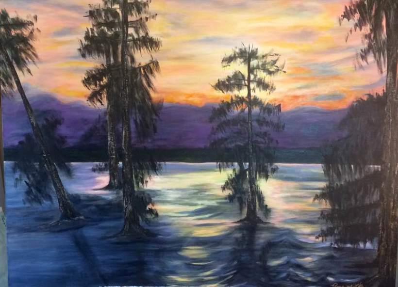 This is a work based on Louisiana photographer John Snell’s photograph entitled Pontchartrain Reflections. I just sold it to a fellow artist!