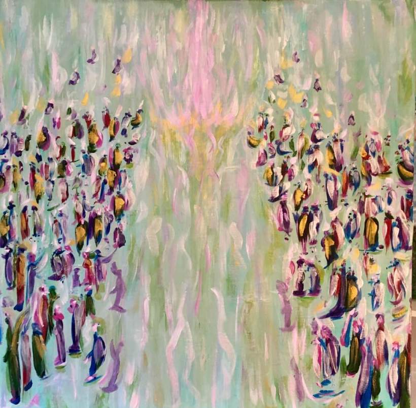 I’m finally satisfied with this painting, which I approached in an entirely different way. It’s exciting! Every time I look at it, I see something I didn’t see the last time. This is thrilling to me, and now that my perspective is colored by the current political climate, what I see in it has moved me to call it simply Resist. How many different things do you see?