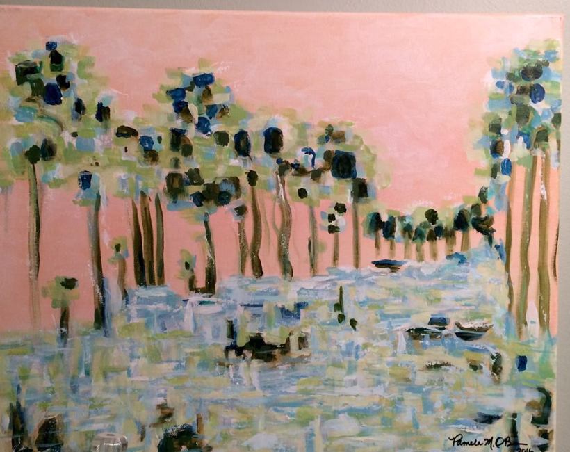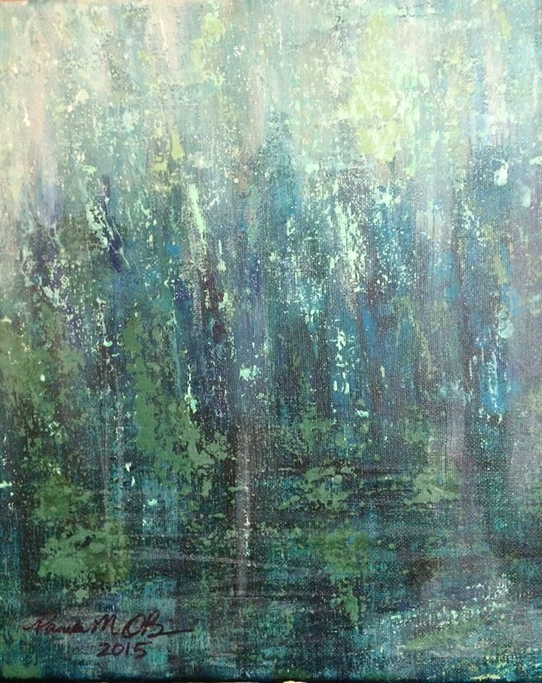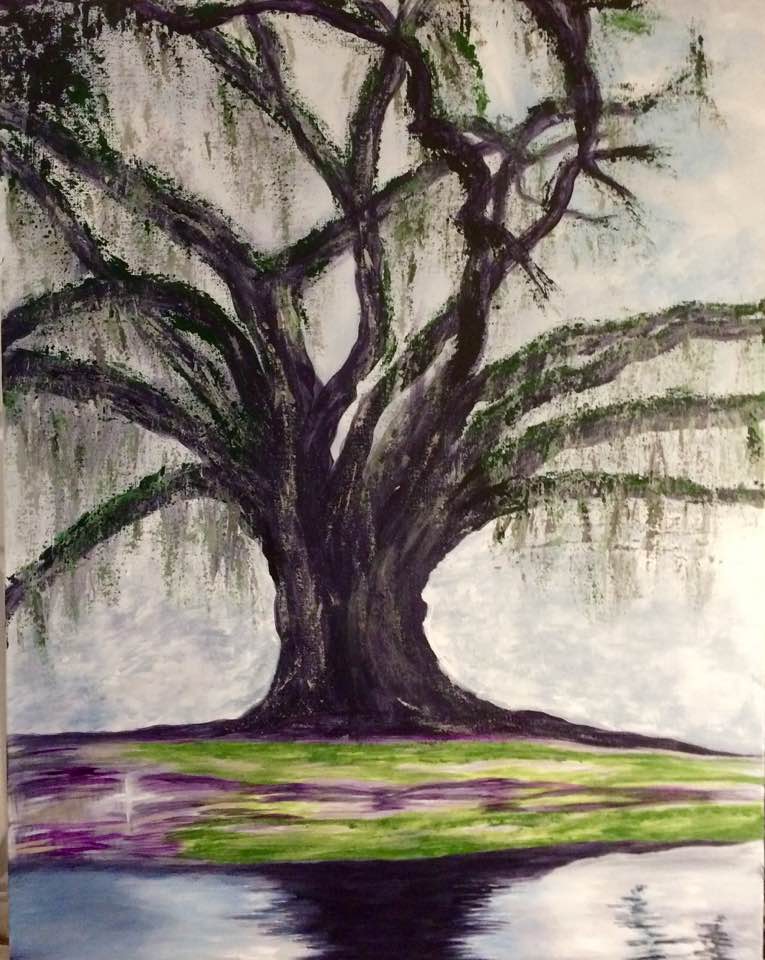 This is the latest update, with leaves and moss; it is a work in progress from a photograph by unknown of an old Live Oak tree in New Orleans. The above name is how I will always think of it because it was mostly done while waiting for my internet provider to come and restore my internet after one of their contractors showed up unexpectedly to bury the cable line, but unhooked the cable connection instead, and left without saying a word. He left his shovel behind. At any rate, I’m working on getting the suggestion of trees and shrubs in the background as they would look on a very foggy morning. It’s harder than you would think!